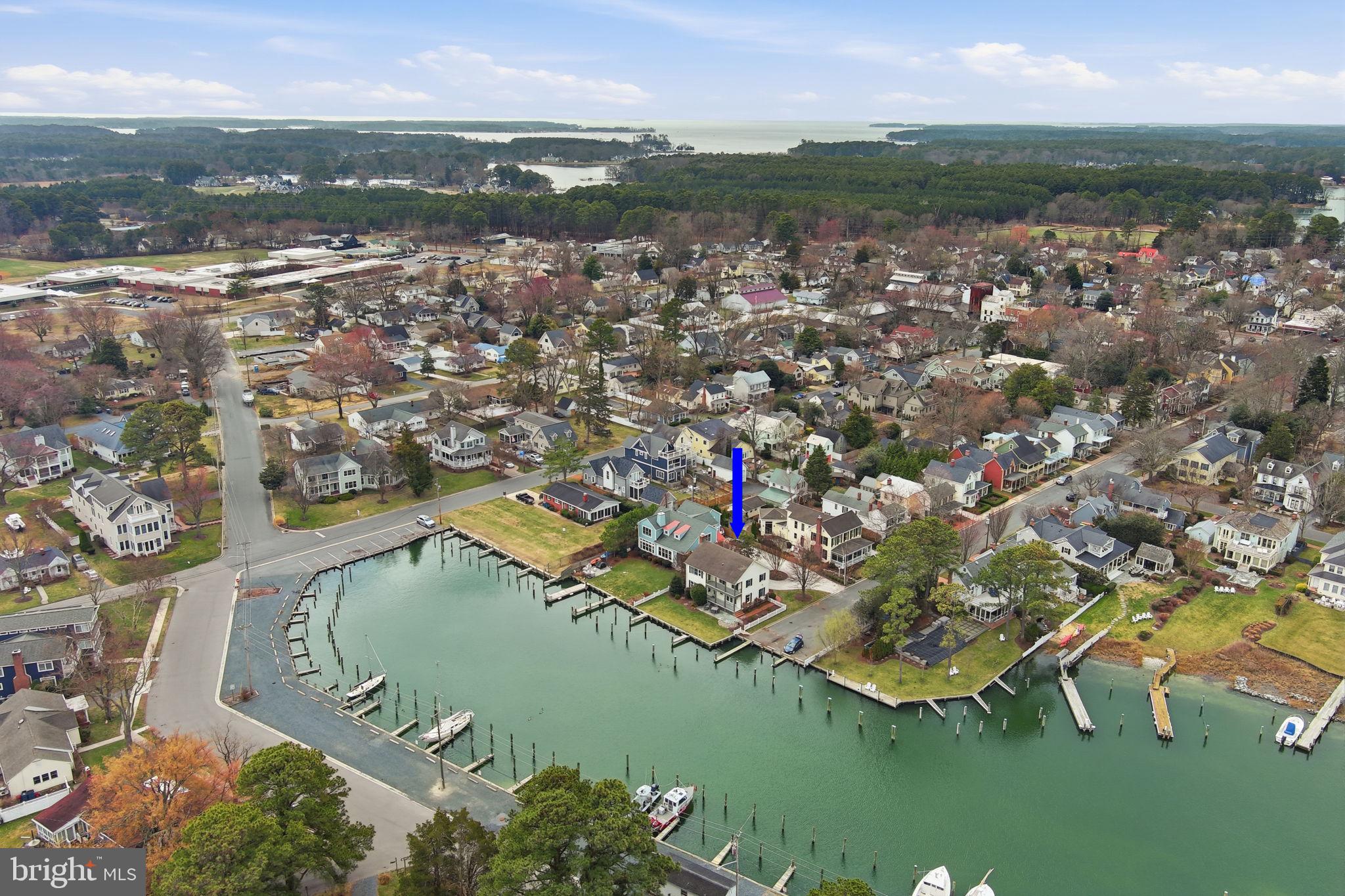 Where the harbor meanders to a close and drifting ducks replace the bustle of boats, this 2,284 square foot colonial captivates as serene dockside stillness gives way to elevated coastal personality. Whether welcoming guests from its end-of-lane circular drive or stepping ashore from one of your four boat slips, your restful retreat pampers with beautifully renovated interiors by local shop, Come By Chance's, design team. Across living spaces, you'll enjoy quiet refinement of the original 1996 construction as hand-scraped hardwoods, tailored millwork, crisp coastal hues, and light-filled windows frame seasonal harbor moments. Host visiting guests near your wood-burning hearth where built-ins hold favorite reads, collected shells, and travel mementos. Here, both curated and comfortably lived-in personality mirror mornings with coffee and dinner aromas from your breezy kitchen of high-end appliances, stone surfaces, and a central island. While everything from simple breakfasts to generous crab feasts overlook nautical views from your sunlit sitting room, you're sure to linger long after meals from either of the double balconies. Here, let casual conversation entertain, then settle within either of your three serene bedrooms letting two full and one half baths refresh. Outside, toss yard toys for a four legged friend, cast off kayaks towards quiet coves, or set sail into the open expanse of the Chesapeake Bay. Closer to home, afternoons unfold, just a stroll's-distance away toward daily discoveries within nearby St. Michaels shops, cafes, museums, and the yacht club.