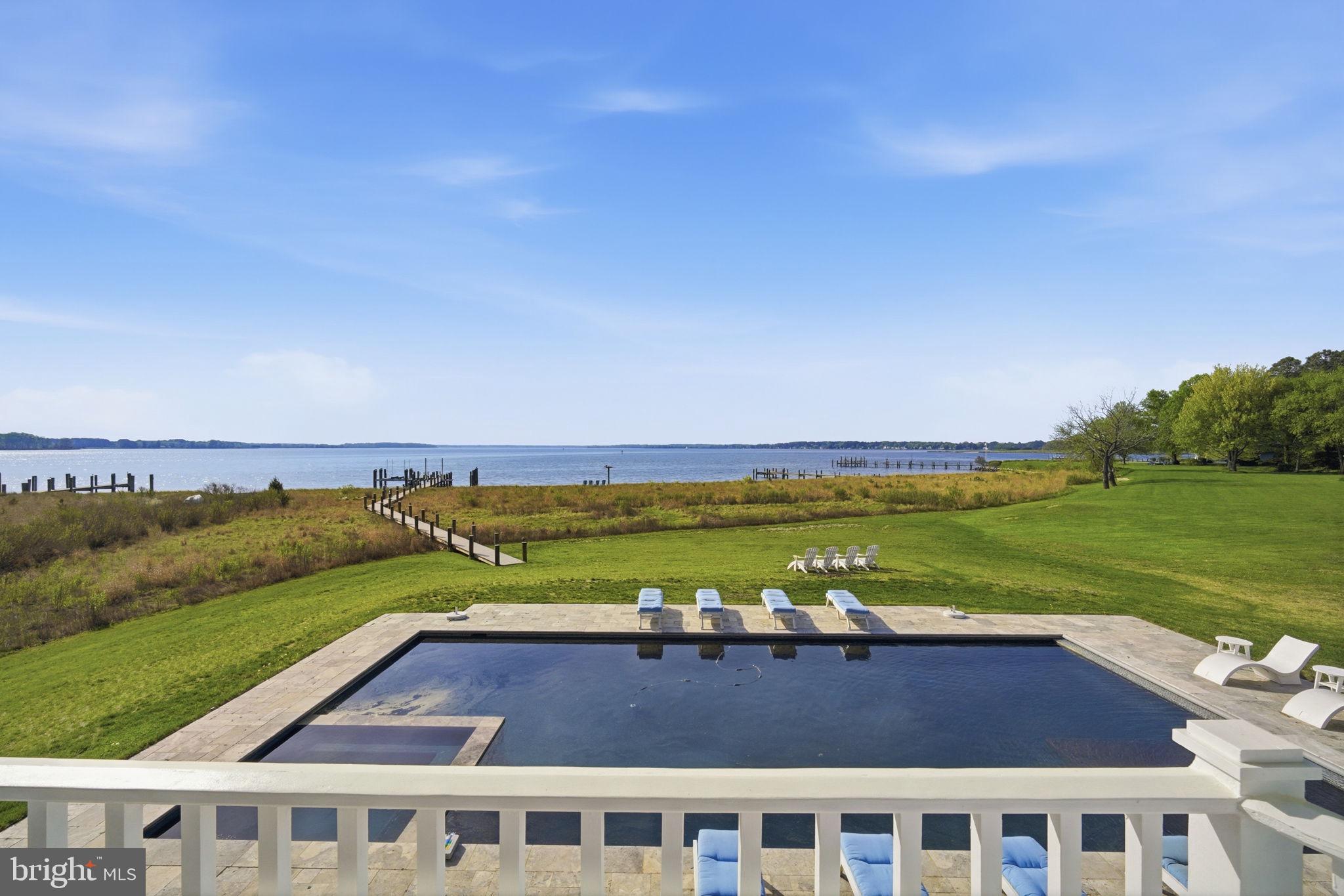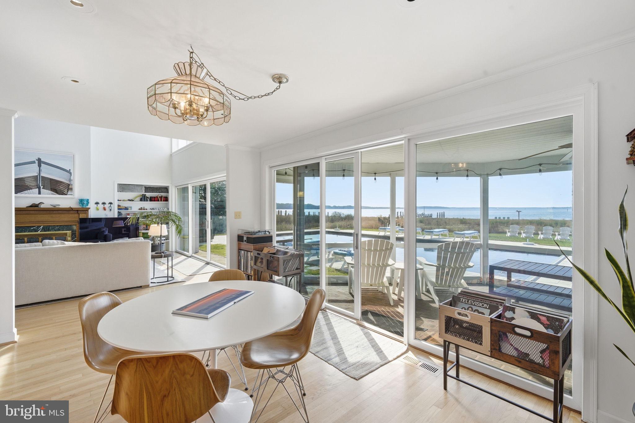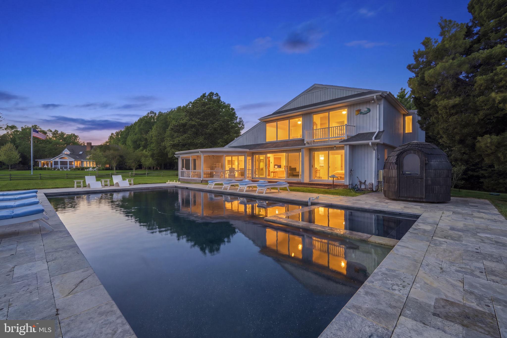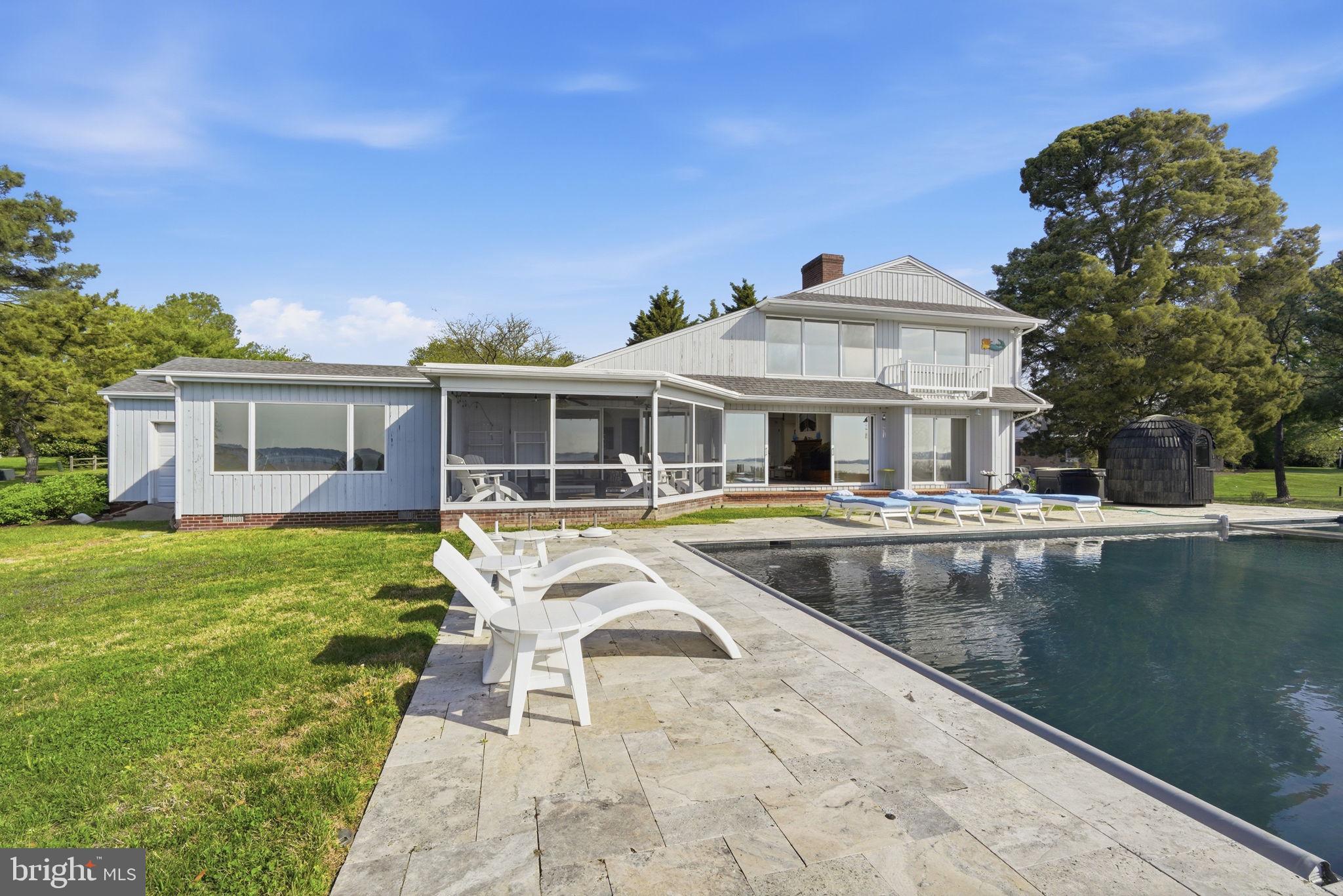 A treasure of vantage points and chic contemporary beauty, this Martingham waterfront retreat offers rare front-row views of Miles River happenings - including the historic Log Canoe Races, Fourth of July fireworks, daily passages of billowing sails,and, on crisp days, sightlines stretching to Kent Island Bridge. Set on 2.32 acres with nearly 250 feet of sandy shoreline, life here moves with effortless rhythm; from morning beachfront strolls to afternoons shaped by regattas, summer pool parties,and in-town finds.