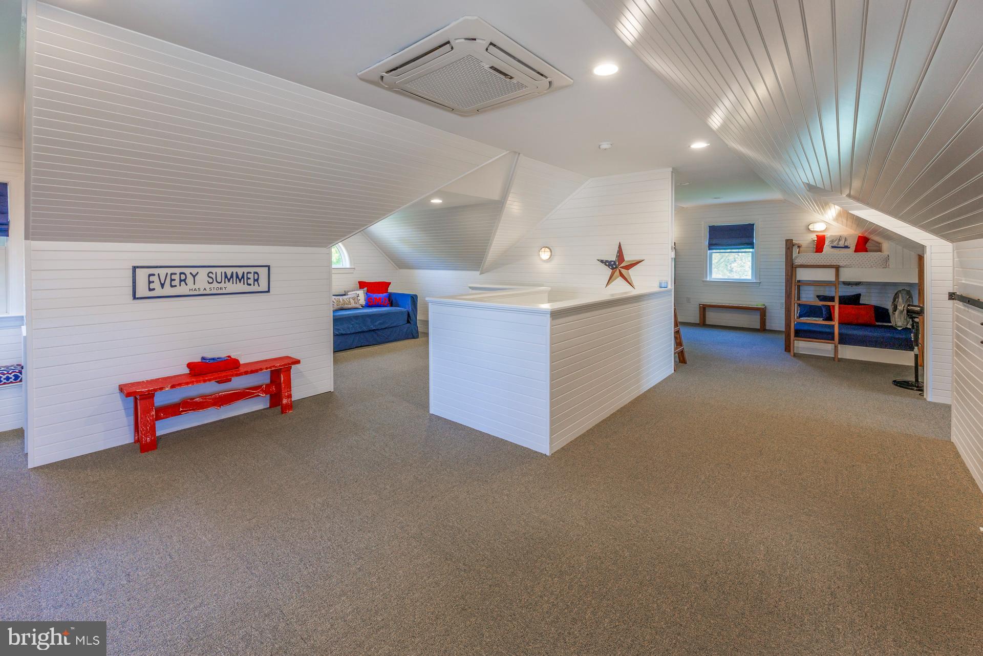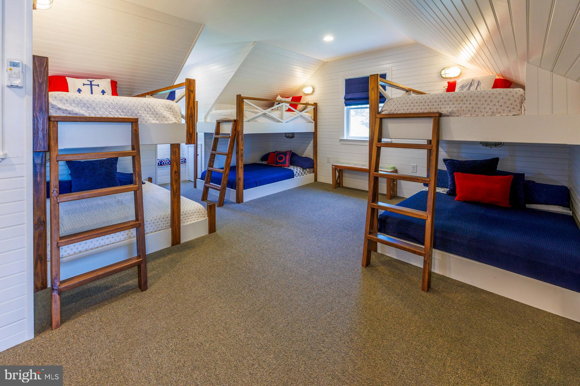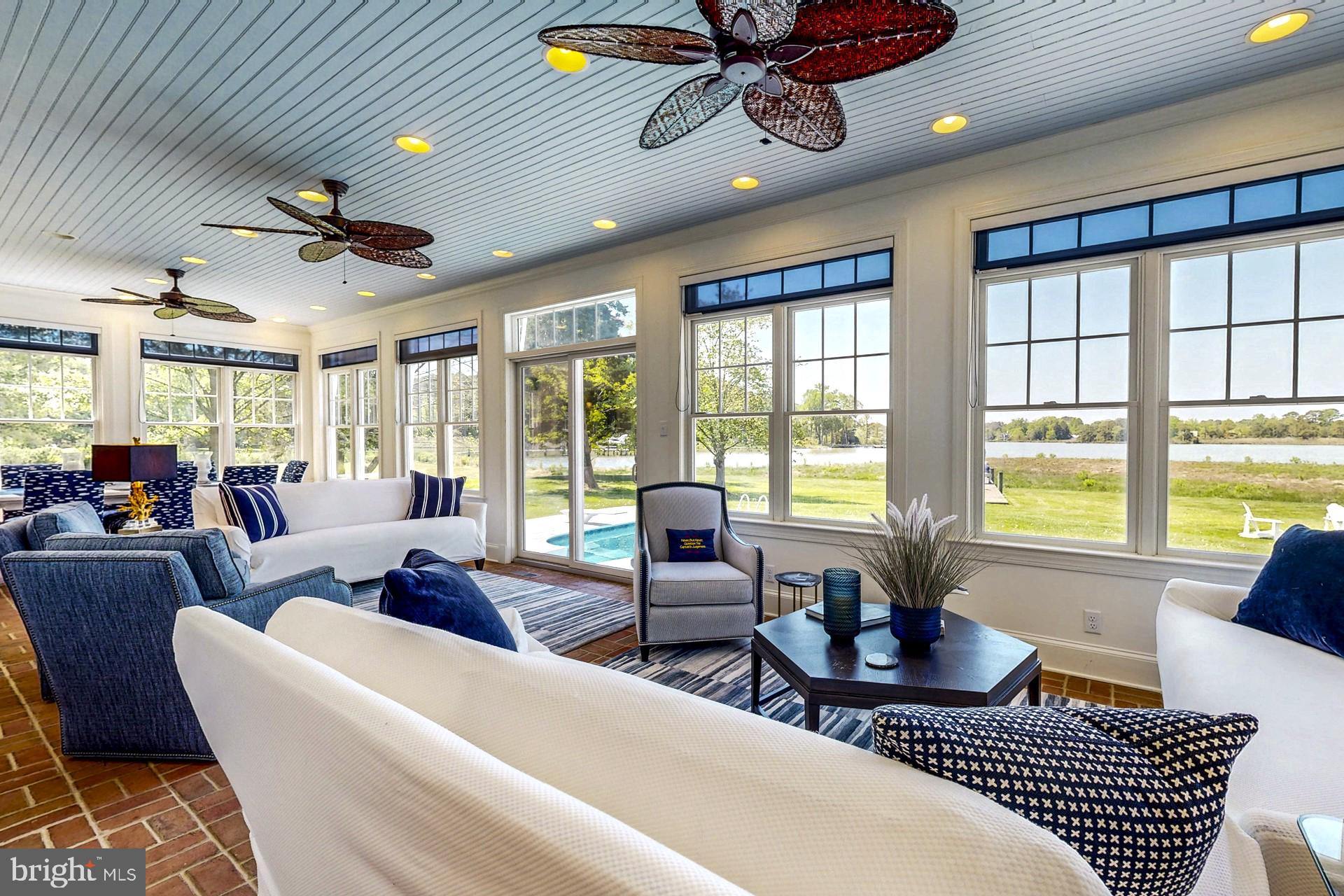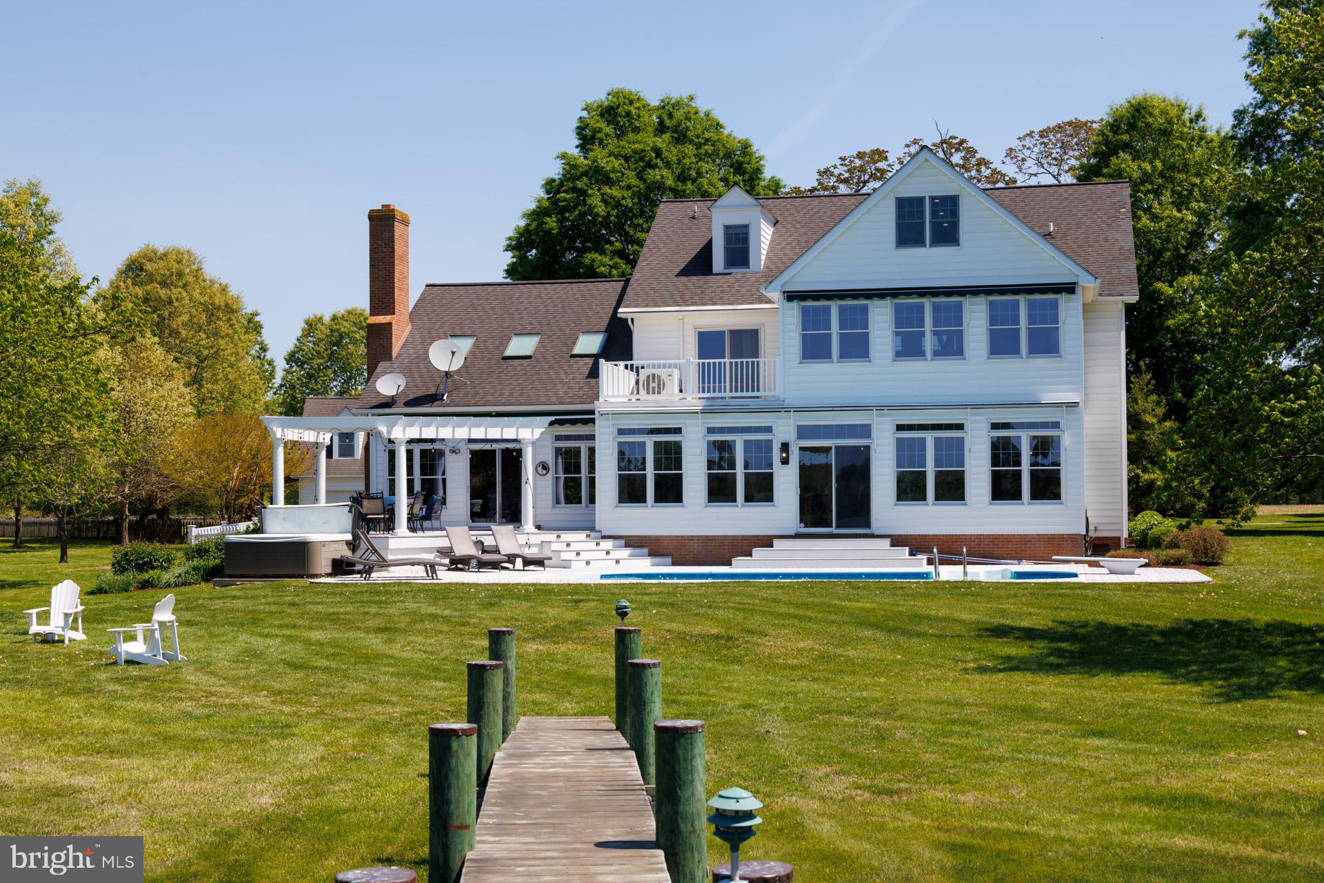 This beautiful waterfront estate with broad views of Plaindealing Creek is being sold furnished (except for owners personal belongings and some artwork) and was tastefully decorated by Come by Chance out of St Michaels. Sited on 21 acres (zoned agricultural) the property provides the utmost in privacy, and features a waterside pool, hot tub, and pier with lift and 3+ MLW. The main house offers spacious living areas boasting elegance and charm, high ceilings, gleaming hardwood floors, and bespoke finishes. The open floor plan on the main level features a gourmet kitchen with stainless appliances and center island, a large family room with cathedral ceiling and wood-burning fireplace, an expansive enclosed sunroom overlooking the pool and creek, and formal living room and dining room. In addition, there is a guest bedroom (could be used as an office too) and full bath. On the second floor, the primary suite is a rare treat featuring an ensuite sitting/reading room with panoramic water views, luxurious primary bath with soaking tub, separate shower, double vanities, and his/hers walk-in closets. Two additional bedrooms, a large hall full bath, laundry facilities, private nook (currently used for additional bed space), and open landing overlooking the family room complete the second level. The third floor is completely renovated, has shiplapped walls, and includes a full bath. Finished with multiple bunk areas, this incredible space provides great fun for kids and guests. An attached 2-car garage and small dog run complete the main residence. Adjacent is a 2-car detached garage with a charming studio apartment above, boasting hardwood floors, bedroom, kitchen and living areas, full bath, and outdoor deck. An additional 1-bay garage/shed is also onsite providing ample storage for boat, tractors, etc. Whether you're enjoying the tranquility of outdoor living or hosting lively gatherings with friends and family, this property offers the ultimate of being on the Eastern Shore. Note: The lane is owned by this property though the two neighbors on the left have 'right of way'.